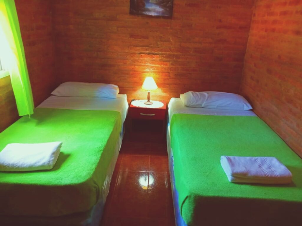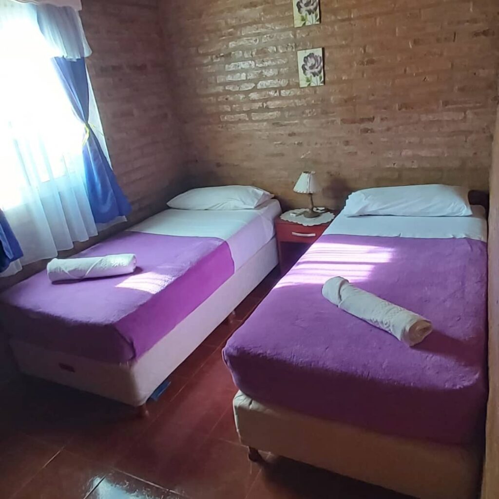 Cabañas para 4 o 5 personas con aire acondicionado, tv, servicios de blancos y vajilla. Están totalmente equipadas y cuentan con garaje privado y parrilla. Además tenemos una cancha de vóley y una hermosa piscina que te espera para que la disfrutes!